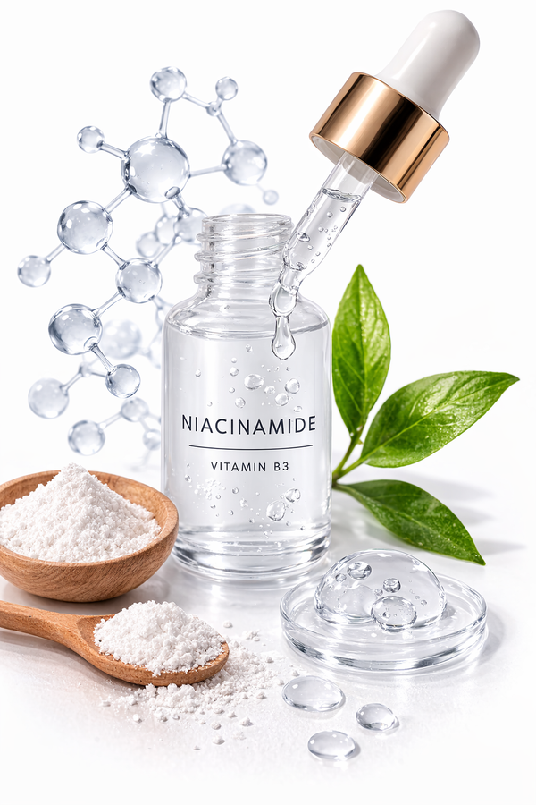 Niacinamide (Vitamin B3) helps regulate excess oil, minimize the appearance of pores, and strengthen the skin barrier for smoother and healthier skin.